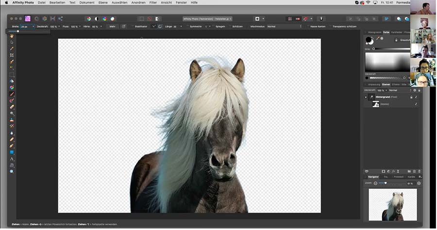 Die Fotos sind erstellt. Kann ich das jetzt einfach ins Netz knallen? Nein, definitiv nicht! Zuerst sollten die Bilder nachbearbeitet und in der Auflösung angepasst werden, um für’s Web ready zu sein. Die professionelle Software Affinity ist dabei ein hervorragendes Instrument und bietet zu den bekannten Produkten von Adobe eine echte und kostengünstige Alternative. Die Outputs haben begeistert.